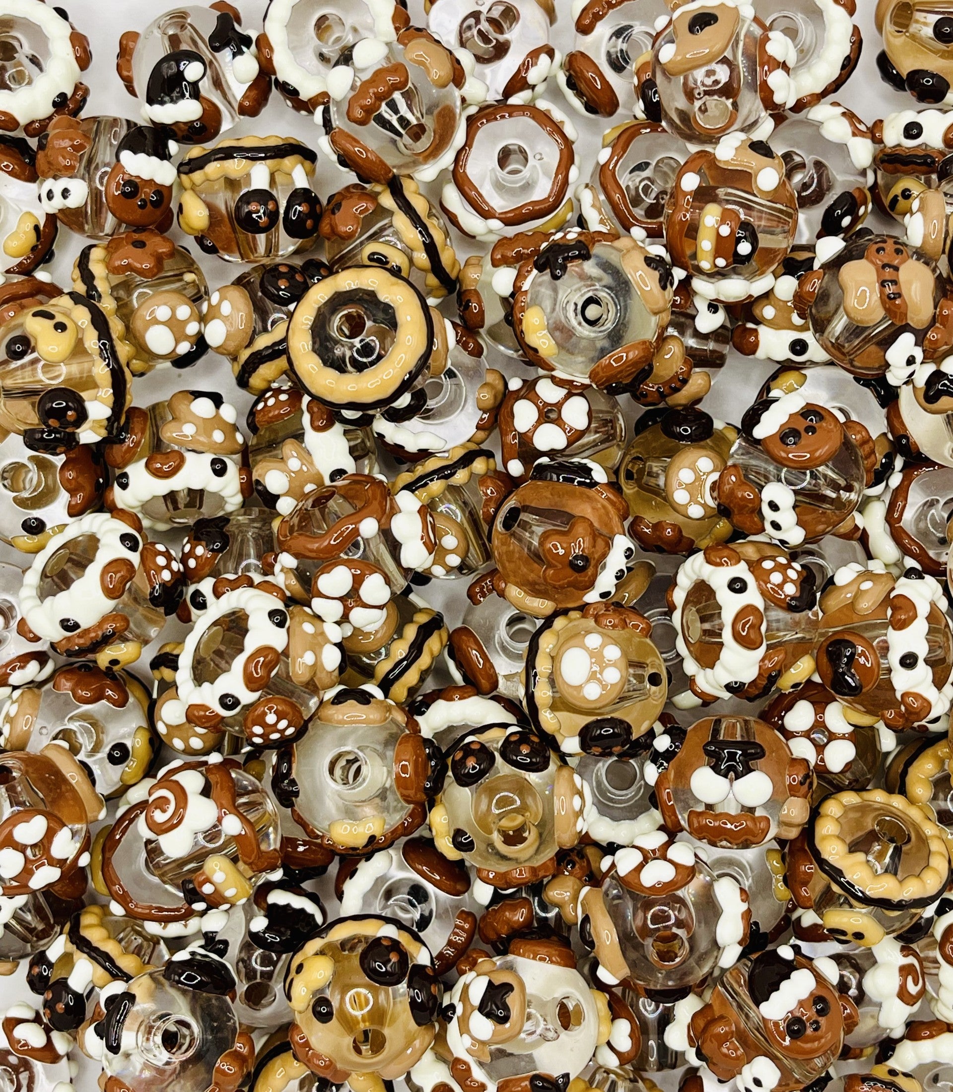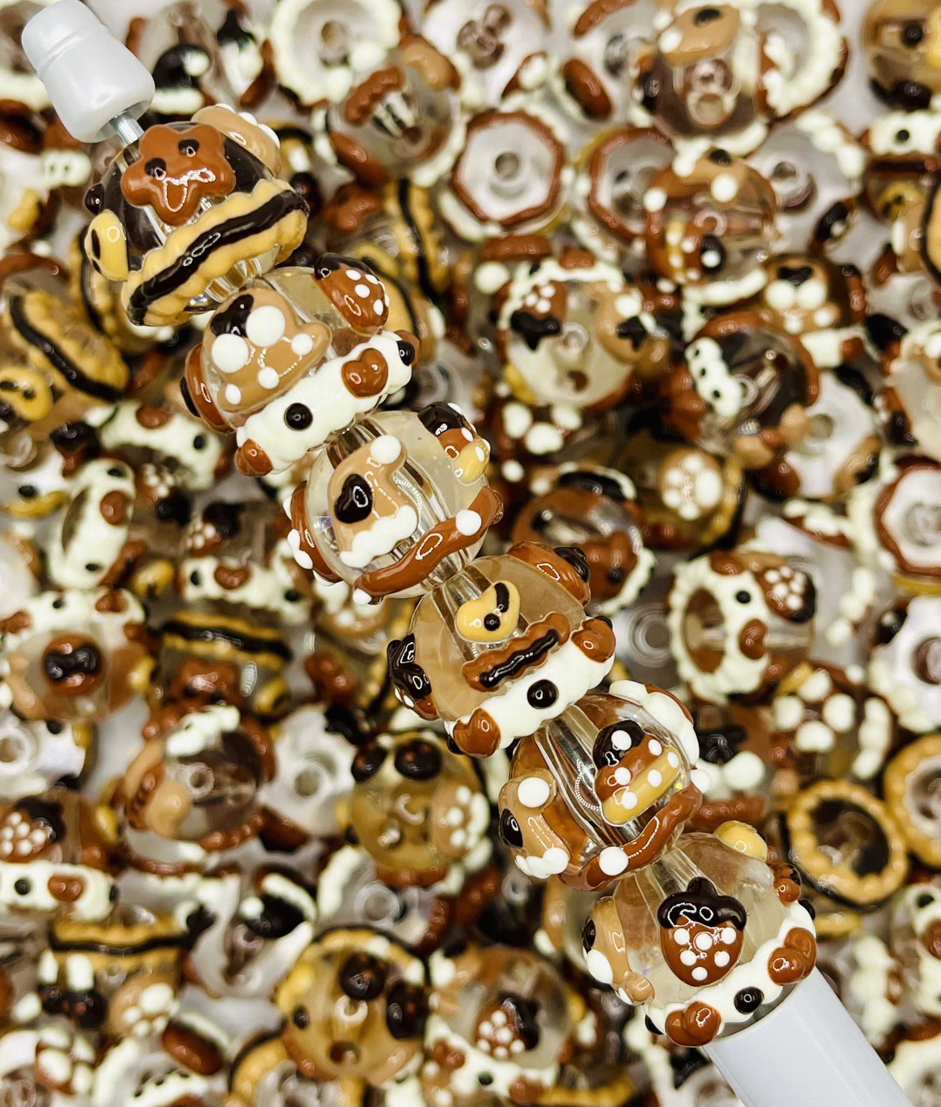 Sweet treat vibes for your builds! This cozy mix of hand-painted acrylic beads features donut rings, frosting swirls, and dotted “sprinkles” in cocoa, caramel, latte, and vanilla tones. Smooth large-hole centers slide easily on beadable pens & most beadable items, plus chunky bracelets and keychains.