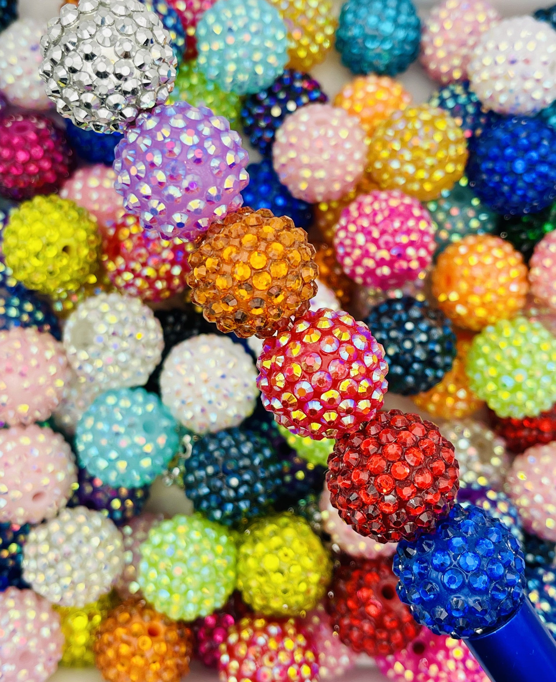 Transform your crafts with the brilliance of Chroma Multicolor Rhinestone Beads! These 20mm beads feature a dazzling array of colors with shimmering rhinestones that catch the light beautifully. Perfect for beadable pens, jewelry, keychains, and DIY projects, these beads bring vibrancy and elegance to your designs. Their versatile, eye-catching style makes them ideal for adding a bold and glamorous touch to any creation.