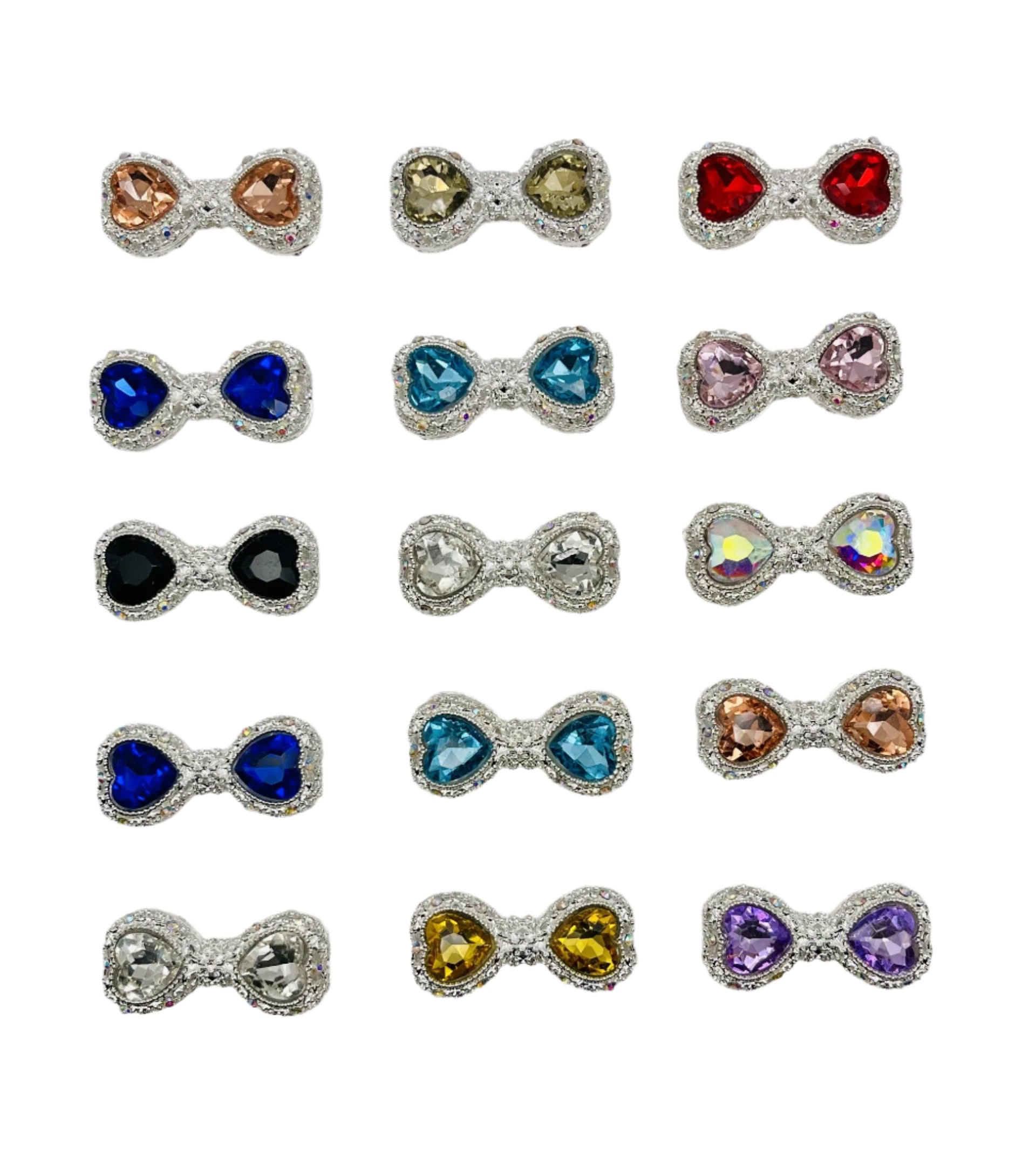 These 25mm bow charms are the perfect glam accent! Featuring twin gem hearts surrounded by glittering rhinestones, they bring a luxe touch to pens, keychains, or jewelry. Available in a rainbow of bold and pastel colors, each charm adds instant sparkle and sweetness to your creations.