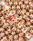 Add a sweet, fruity touch to your crafts with these Strawberry Fields Beads! Each 20mm round acrylic bead is decorated with vibrant red strawberries and tiny yellow blossoms on a creamy background, bringing cheerful summer vibes to any project. Perfect for making playful jewelry, beadable pens, keychains, or phone charms.